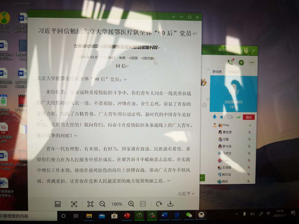 4月30日,机械设计与制造党支部组织教职工开展政治理论学习及主题党日活动,学习贯彻“习近平总书记重要回信精神”,进行加强新时代高校青年党员队伍建设的讨论。新冠疫情防控期间,本次主题党日活动采用了线上学习讨论的方式。