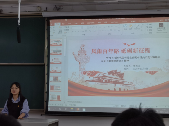 为响应上级党组织号召,积极学习习近平总书记系列重要讲话精神。2021年10月9日,机械本科员工第一党支部在X2420开展了“习近平总书记在庆祝中国共产党成立100周年大会上的重要讲话”的学习分享活动。