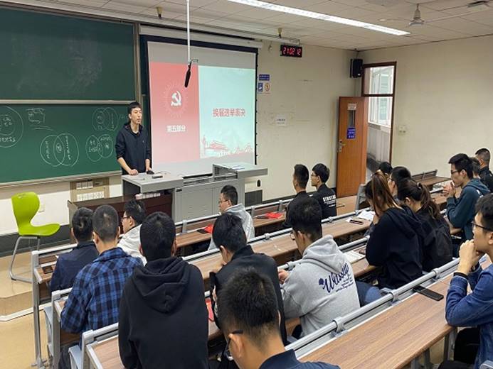 本次换届选举会议由三个部分组成。首先张有旭同志代表党支部对新加入的党员同志表示欢迎,新生党员同志们先后上台热情大方地介绍了自己专业方向、兴趣爱好和未来展望,支部成员用掌声对新生党员的加入表示热烈欢迎。接着赵文超同志对上一学年的重点工作进行回顾总结,为今后工作提供经验。上一学年中,支部开展20余次主题党日活动,六次线上会议,4次支委会议,两次主题党课,其中包括退役军人讲党课、重温入党誓词、“初心”读书分享会等特色鲜明,效果良好的党日活动,切实推动党史学习教育入脑入心。支部党员同志们将参与活动的心得体会文字化,共上交70余篇学习心得,记录党性修养进步的点点滴滴。会议同时总结了党支部工作中的不足之处,并提出了相应的对策。赵文超同志寄语新成立的支部委员会再接再厉,做到影响一批人、代表一批人、带动一批人,带领硕士第四党支部取得更加优异的成绩。最后张有旭同志组织与会党员进行支部委员的选举,候选人依次上台发表自己的竞选宣言。在候选人发言结束后,经过与会党员的不记名投票,最终张有旭同志、卢旭磊同志、樊翔翔同志、赵文超同志、谭睿同志、张金璐同志、许靖浩同志当选为支部委员。