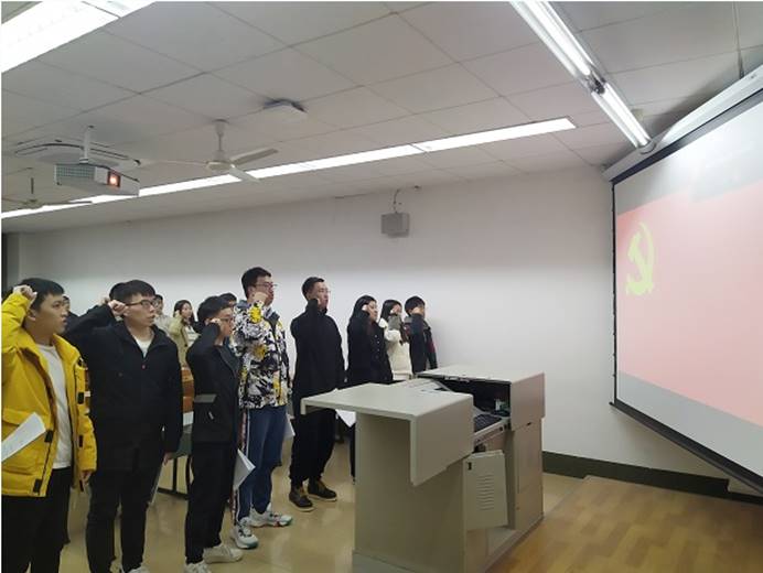 本次会议由三项议程组成,首先,八位发展对象分别宣读了各自的入党申请书,阐述了他们的入党动机和对党的理论方针路线的深刻认识,表达了对加入党组织的殷切期望。接着,培养人介绍发展对象成为入党积极分子这一年来在思想状况、学习生活、社会活动等方面的表现,并就考察情况及本人意见做了说明。之后全体与会党员对是否接收陈凤、谢雨诗等八位同志为预备党员进行了充分讨论并进行了不记名投票表决。全体党员一致通过陈凤、谢雨诗等八位同志的入党申请。会议第二项议程是讨论表决何斌与张俊才两位同志的转正申请,首先两位同志分别宣读了自己的转正申请书,接着考察人对其预备期间在政治思想、学习工作等方面的表现进行了总结,然后支委向全体党员介绍其考察期间的表现,最后与会党员充分酝酿并投票表决,全体党员一致通过了何斌、张俊才两位同志的转正决议。会议第三项议程是党支部书记张有旭带领包括新发展对象在内的全体党员面向党旗进行了庄严的入党宣誓。最后张有旭进行了会议的总结发言,表达了对于新入党同志的祝贺和欢迎,希望全体党员牢记入党初心,坚定理想信念,继续埋头苦干,用实际行动展现新时代研究生党员的担当与风采。