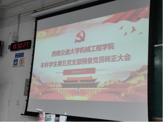 2022年4月7日下午,388vip太阳集团本科员工第五党支部在犀浦校区x2229教室召开预备党员转正大会。