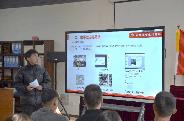 随后,2022级博士班党支部副书记张耀文同志也紧紧围绕本党支部成立以来开展的建设工作做出分享,指出本党支部因地制宜、因时制宜,采取线上线下相结合的方式开展党支部建设工作,完满举办了志愿活动、主题学习活动、科研交流活动等,为科研任务繁重的党支部建设提供了参考。