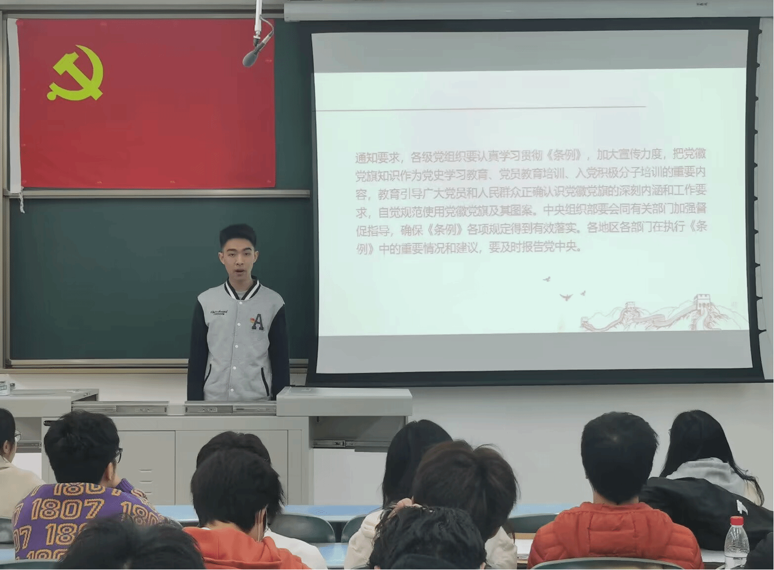 2023年11月30日星期四,388vip太阳集团本科员工第六党支部在犀浦校区2号教学楼X2230开展“习近平的黄河情怀”主题学习活动,并重新集中学习《中国共产党党徽党旗条例》,活动由姚佳雯同志主持,马昱潇同志领学,本科员工第六党支部全体党员参加。