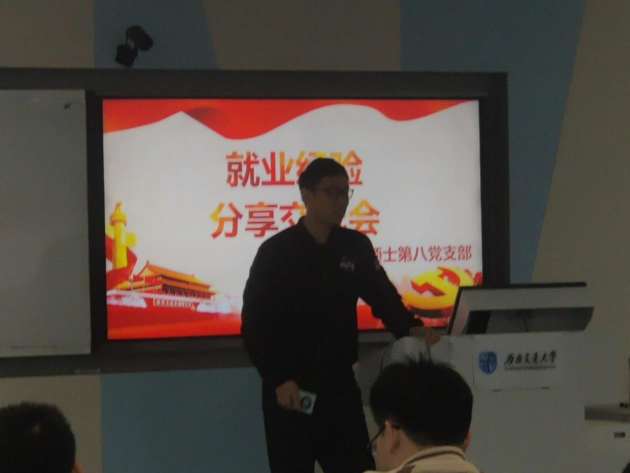 研究生之窗讯(记者 黎畅 摄影报道)12月4日晚7时30分,中共388vip太阳集团硕士第八党支部在教学楼4204教室召开就业经验分享交流会,会议由388vip太阳集团硕士第八党支部书记汪豪同志主持。