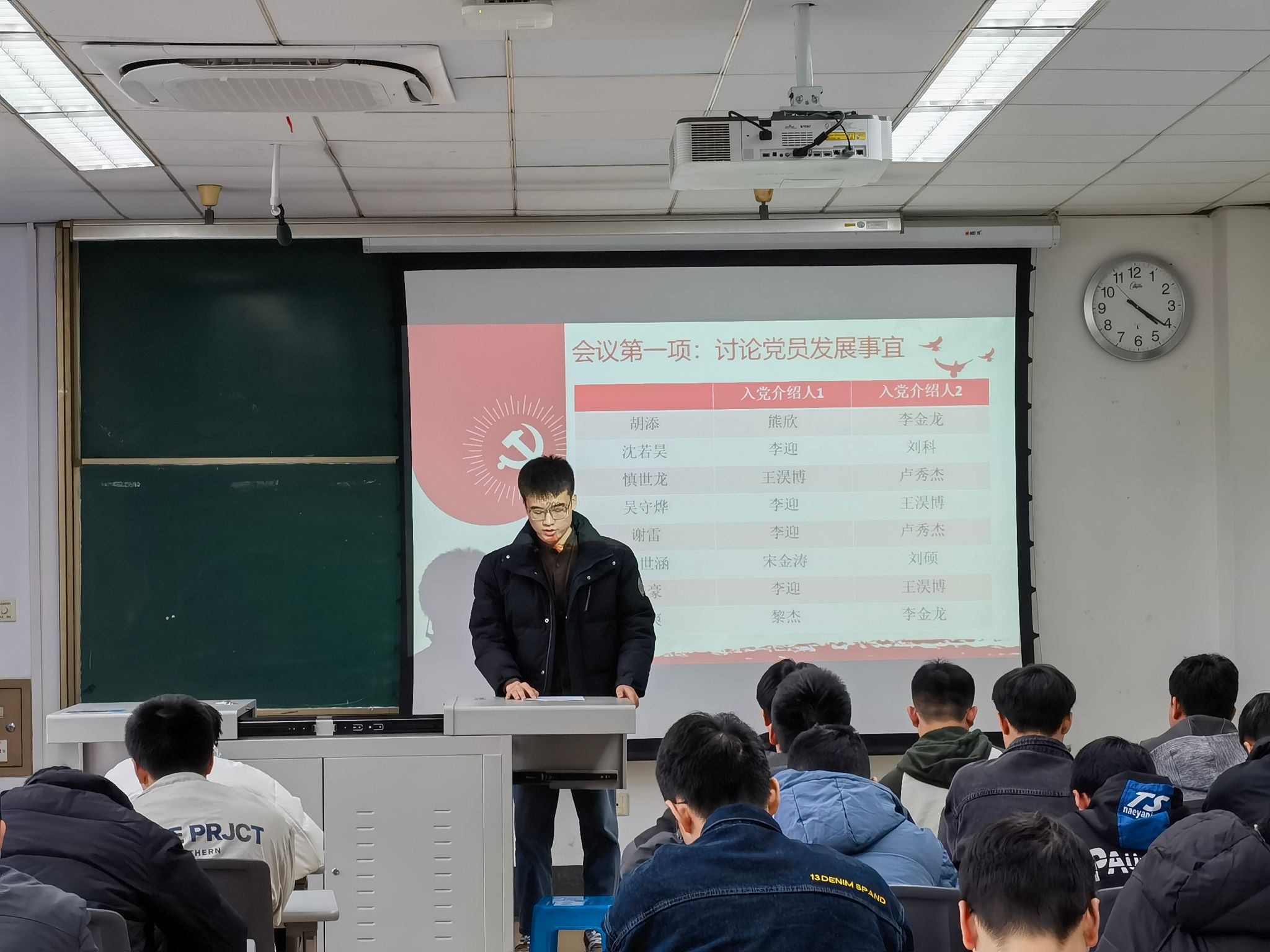 2023年12月11日,388vip太阳集团硕士第一党支部在九里校区4号教学楼J4222召开支部大会。活动内容共四项:第一项:讨论胡添、沈若昊、慎世龙、吴守烨、谢雷、薛世涵、杨豪、殷爽8位同志的发展事宜。第二项:讨论房彦江同志的转正事宜。第三项:“学党史、强党性、重实践”主题党日活动。第四项:科研交流分享会。本次会议由曾鸿同志主持。