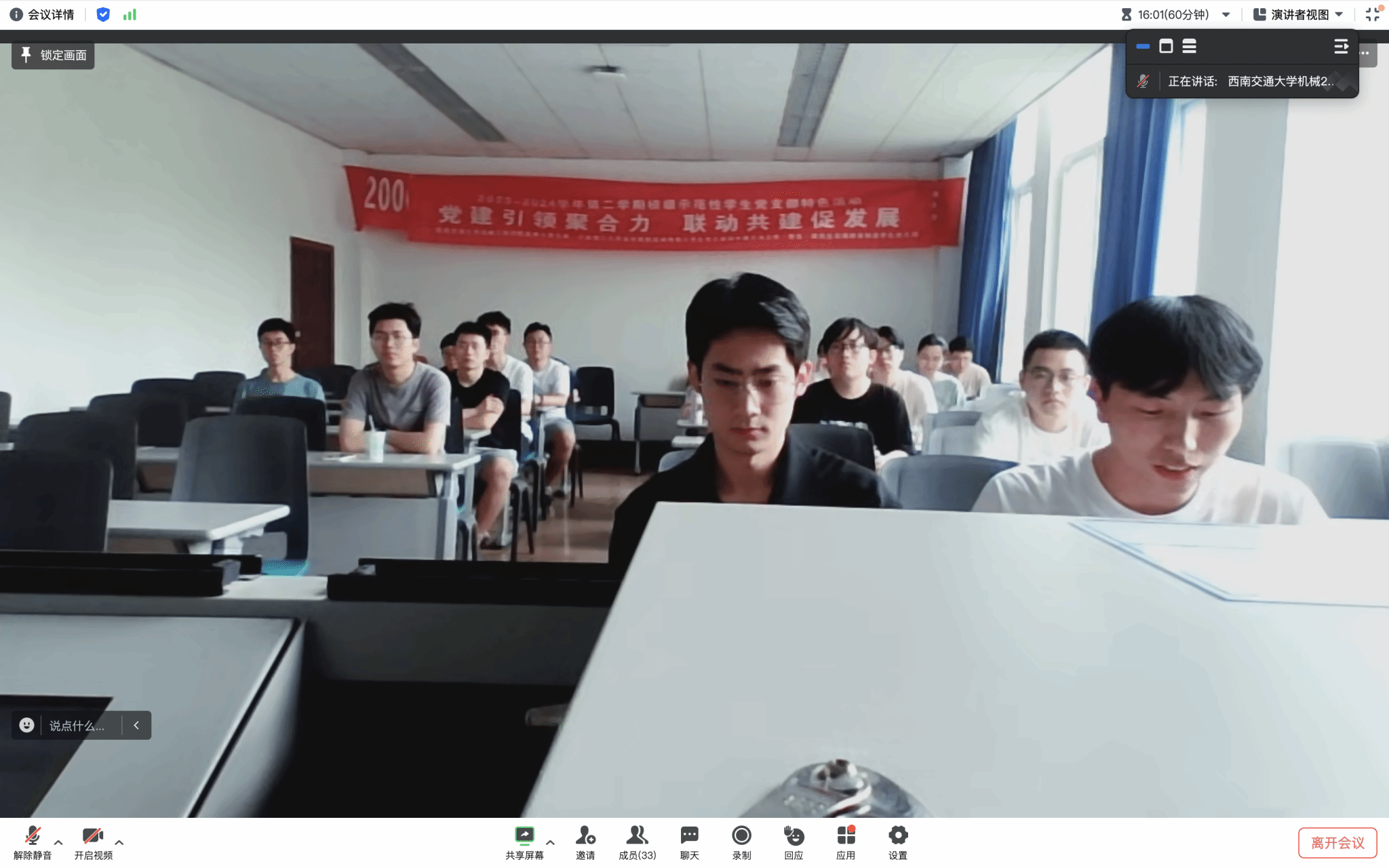 5月24日下午,23级博士党支部、大连理工大学高性能制造硕博第六员工党支部和中国石油大学(华东)机电工程公司研究生高端装备制造员工党支部召开联建共建暨党纪学习教育主题党日活动,通过线上(腾讯会议)+线下座谈形式,以“提升党建引领力、提升党建聚合力,提升党建战斗力”为建设目标,以“党建引领聚合力,联动共建促发展”为教育主题,以“线上线下相结合,党建与科研相结合”为核心形式,就党纪学习教育和下一阶段联合组织开展主题党日活动等事项进行交流学习。三方支部全体党员参加会议。卢旭磊同志主持会议。
