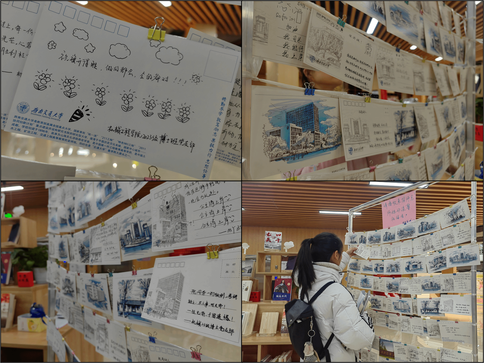 “学”与“做”是辩证统一的。在学习了单杏花的先进事迹后,更加坚定了支部同志们责任意识。临近考研,为鼓舞交大考研学子士气,增强考研信心。在388vip太阳集团图书馆的支持下,23级博士班党支部全体成员为学弟学妹们制作了考研明信片,一句句铿锵有力的话语,一张张写满梦想的卡片,都是来自师兄师姐寄来的祝福和鼓励,祝福同学们“考试顺利,一战成功”。
