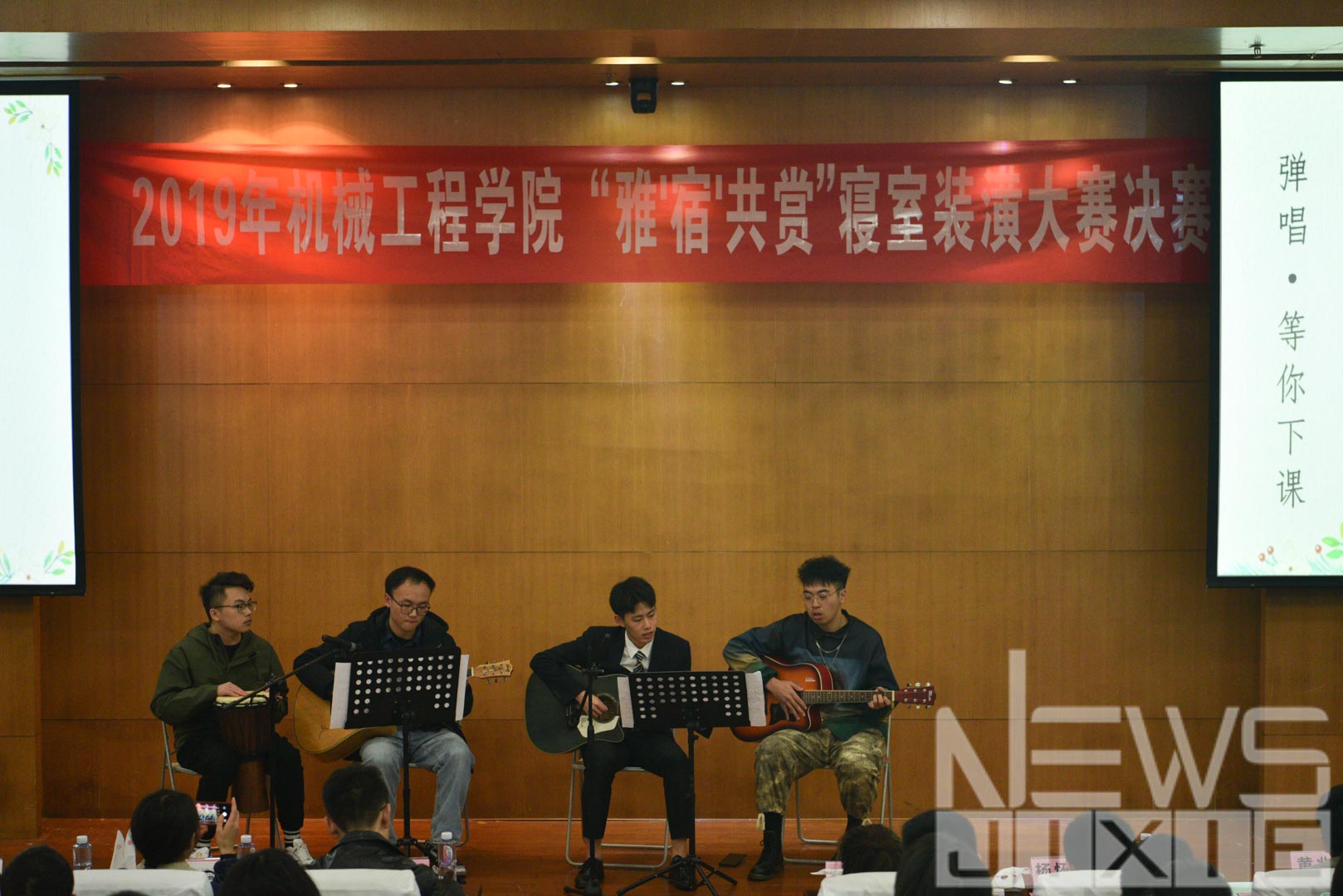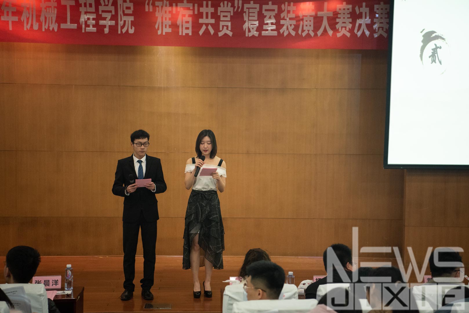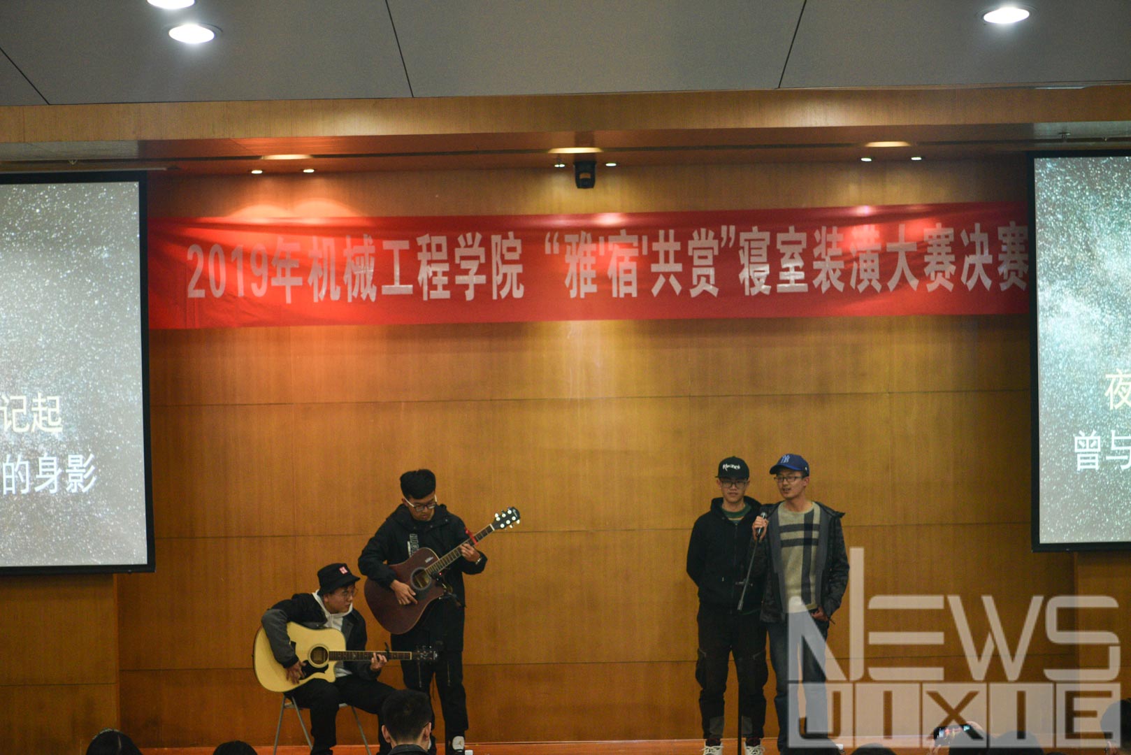 当活动正式开始,首先,由机械园区指导老师何蕊芯老师发言,她期盼机械公司同学能够拥有一个更好宿舍环境,并希望机械学子可以传承公司开拓进取的精神,展示交大机械人的风采。何老师精彩的发言,赢得了在场观众的热烈掌声。紧接着到各个宿舍的展示环节。第一位出场的寝室是T035071动物世界,他们从宿舍名字的来源,到宿舍的艺术文化氛围等进行了详细的介绍,并展示了一段相声。第二位出场的是T042064石屿,他们的答辩与表演同样十分精彩,他们用一首《等你下课》表示了青春期的悸动与美好,引得现场观众的共鸣。第三位宿舍T035100壹佰,他们的宿舍名表示了每位成员都要在考试中获得满分的志向。他们用歌舞情景剧的方式展现了宿舍之间似家人似兄弟的关系。