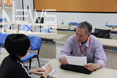 记者发现,答辩环节从10日上午8点开始,一直持续到下午一点半,之后各组的五位专家进行了约四十分钟的组内讨论,直到组内讨论结束,吴教授才赶到楼下食堂匆匆吃午饭,回来后又是漫长的全体专家会议、省级一等奖展示,比赛下午4点半结束时,吴教授才终于能坐下来接受记者的采访,其实在昨天的小组展示环节中,吴教授已经忙了整整一天。但在整个采访中,吴教授没有表现出一点疲惫与不耐烦,在记者提问的过程中都十分专注的聆听并认真思考后作出回答。吴教授的人格魅力,不仅让记者折服,更让交大这所百年母校增添了更深邃的意蕴。