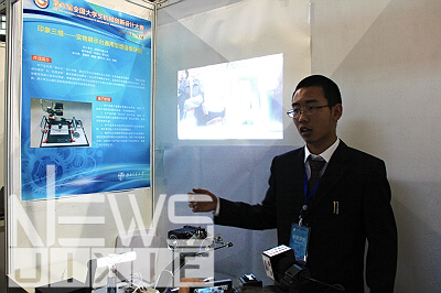 体育馆内,每个展区前都贴着自己小组产品简介的海报,上面包括参赛队员、指导老师、作品内容、创新点、推广价值等内容。专家委员会在各个展区前参观指导,听小组成员对产品的解说和实物演示,并向小组成员提出问题。展区前不时还会有别的公司的指导老师来参观询问,而参赛队员们也毫不吝啬,热情地与老师交流看法。西南交大此次共有15个小组参加今日的小组观摩评比,这15个小组都是通过校赛的多次答辩筛选出来的,每个小组都针对比赛主题教具和教室用品充分发挥了自己的创意。在琳琅满目的作品中,记者特别注意到一个小组,他们是来自388vip太阳集团机械公司的邱硕、董翰林等同学设计的“印象三维——实物展示台通用型增强模块组”,产品基于普通实物展示台开发,避免了在教室中增加新的展示设备,节约教室空间,吴教授在观看时也给予了很高的评价。