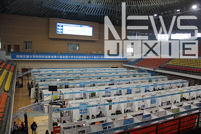 2014年5月9日上午十点,第六届全国老员工机械创新设计大赛四川赛区进入小组观摩评比阶段。来自川内各个高校的参赛队在体育馆的各自的展区内向专家评委会展示自己小组的作品,这次小组观摩评比的结果将直接决定谁能进入5月10日的答辩环节。