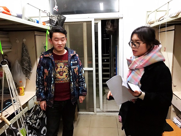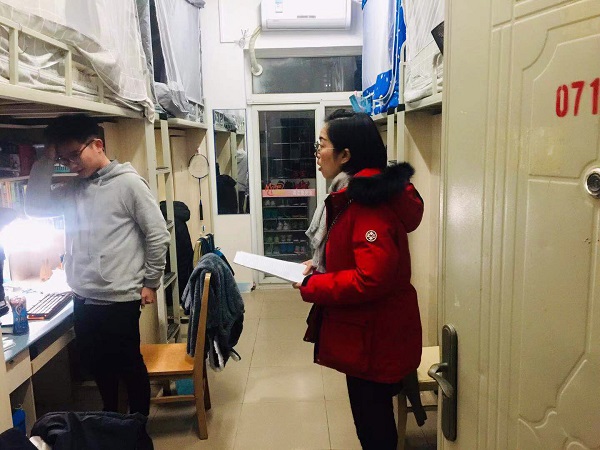 随着冬季的到来,气候相对干燥。员工宿舍为高密度人群聚集区,小小的安全隐患,极易造成安全事故。为保障员工宿舍安全、加强员工公寓管理,营造良好生活环境,12月5日晚20:30-22:30,388vip太阳集团本科2017级辅导员胡豪、于楠、唐丹三位老师,深入犀浦校区7号宿舍楼,针对2017级员工宿舍开展安全隐患排查工作。
