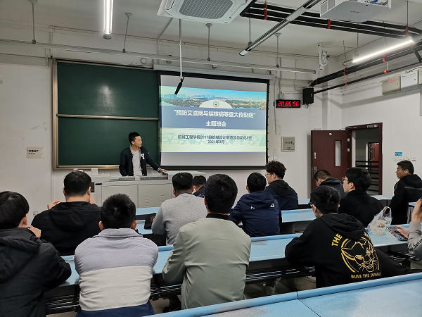 袁欣老师和机械2017-02班班长张鑫宇同学就“预防艾滋与结核病”主题向各位机械设计制造及其自动化的同学进行了知识讲解,帮助与会同学了解了艾滋病和结核病的由来、传播途径及危害,推动各位同学通过良好的行为规范远离艾滋病,呼吁社会宣传与关爱,促进员工健康发展。同学们认真聆听讲解,积极参与交流,相关知识、思想得到有效普及,会议圆满结束并取得预期成果。