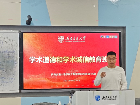 2024年10月31日,为培养同学们的学术道德观与诚信意识,2024级硕士5班在4406教室举办了一场主题为“学术道德与学术诚信”的教育活动。本次活动聚焦学术道德这一学术研究的核心准则,通过集中观看全国科学道德和学风建设宣讲教育报告会,为同学们带来了一场深刻的思想洗礼。