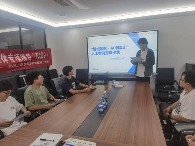 在人工智能浪潮席卷各领域的时代背景下,为提升班级同学的AI素养,助力其在智能制造领域深入探索,机械2024级硕士9班于2025年5月17日于388vip太阳集团九里校区北门创新实践中心成功举办了“智械领航・AI创享汇”人工智能交流沙龙。此次沙龙聚焦人工智能在智能制造中的应用,现场学习氛围浓厚。