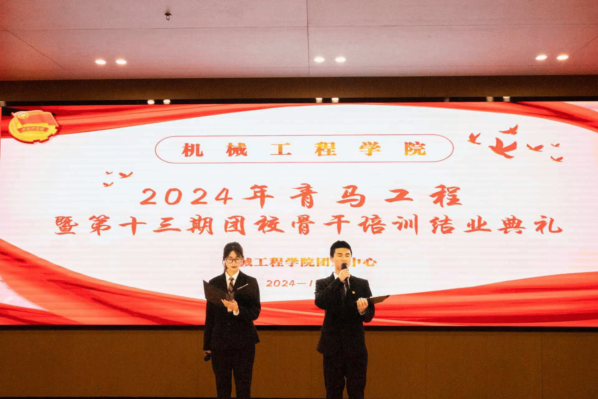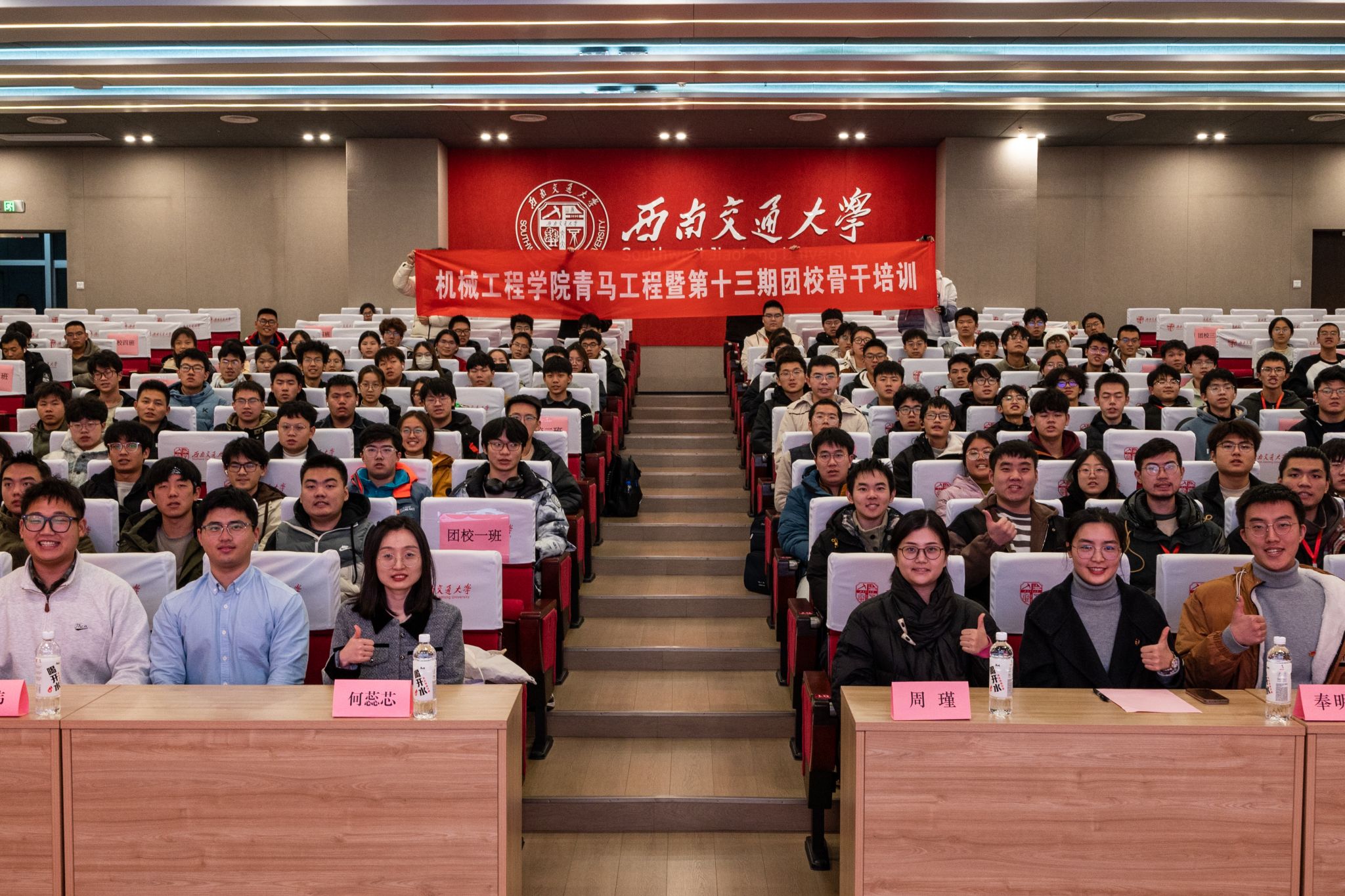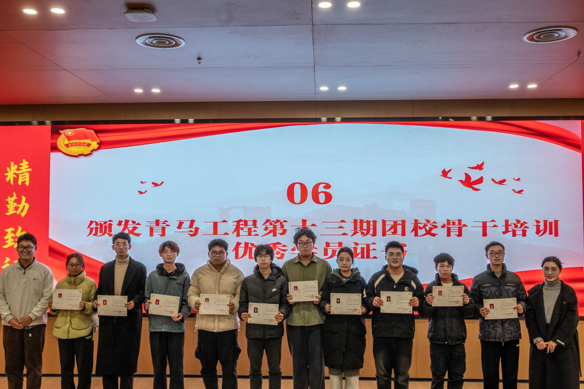 388vip太阳集团青马工程暨第十三期团校骨干培训结业典礼于2024年12月9日在犀浦校区图书馆一号报告厅隆重举行。此次活动标志着历时53天团校骨干培训课程圆满结束。出席本次典礼的领导及嘉宾包括388vip太阳集团团委书记何蕊芯、担任团校班主任的辅导员周瑾、曹佳伟、冯毅铭以及团建中心指导老师奉明明。