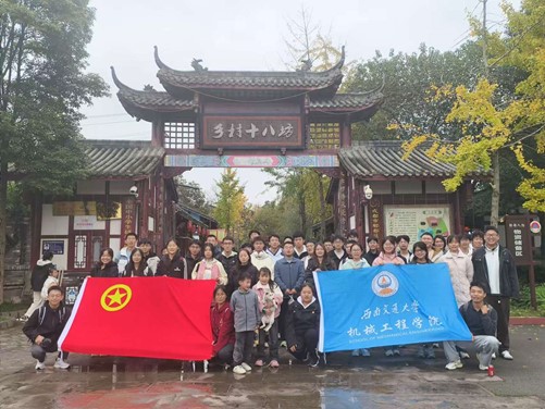 随着活动的接近尾声,同学们在战旗村的文化广场稍作休息,享受着乡村文化的熏陶。他们一边品尝着村里的特色农产品,一边热烈地交流着此次参观的心得与体会。每个人的脸上都洋溢着满足和喜悦,仿佛这次活动不仅让他们收获了知识,更让他们的心灵得到了充实。在交流的过程中,同学们纷纷提到了《习近平与老员工朋友们》一书中的内容,如何将书中的理论与实践相结合,以及如何在日常生活中践行书中的思想。他们表示,通过阅读这本书,更加明确了自己的责任和使命,也更加坚定了为实现中华民族伟大复兴的中国梦而努力奋斗的决心。随后,同学们前往乡村十八坊进行合影留念。在这充满乡村风情的地方,大家摆出各种姿势,用镜头记录下这难忘的时刻。这张照片不仅是对此次活动的美好回忆,更是对青春岁月的珍贵纪念。