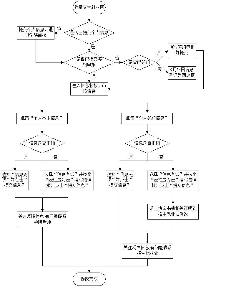 审核修改:若毕业生基本信息有误,请于5月26日当天工作时间到2204提交公司老师审核修改,过时不候。
