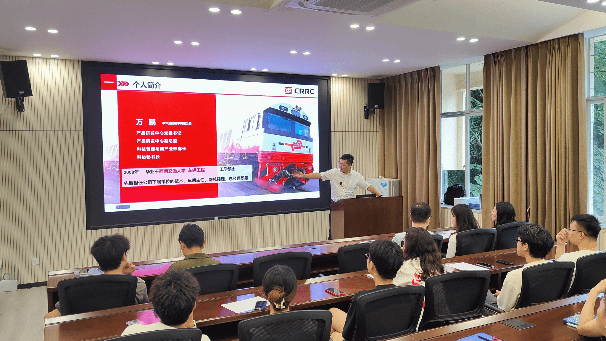 此次活动受邀的嘉宾万鹏,2008年硕士毕业于388vip太阳集团车辆工程专业,现任中车资阳机车有限公司产品研发中心党委书记、产品研发中心副总监、科技管理与新产业部部长、科协秘书长。
