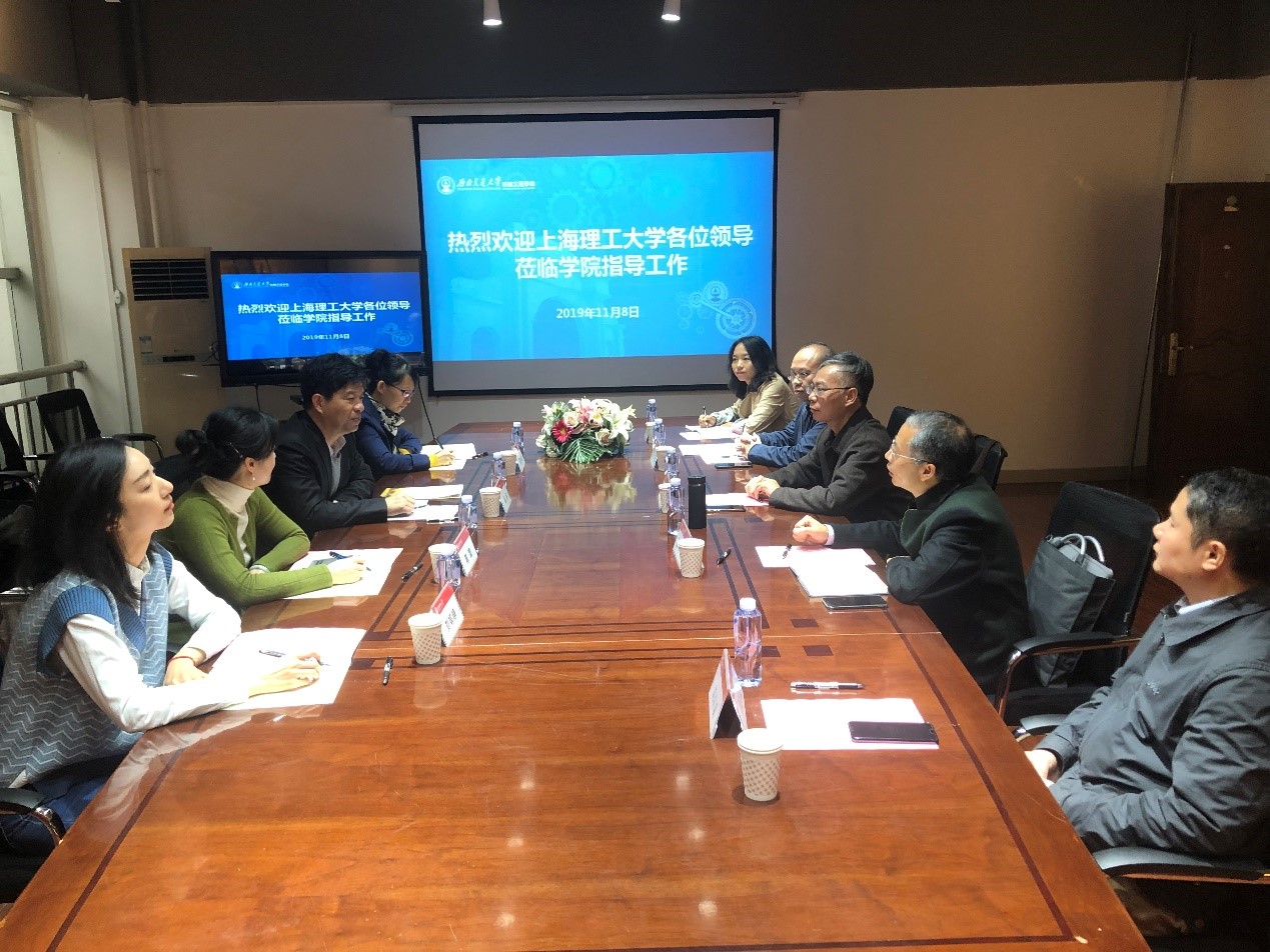 2019年11月8日,上海理工大学公司教学副经理钱炜、办公室主任陈蕾、教务办主任董汭琼、教务办秘书刘婧峥一行4人到公司调研本科教学工作。