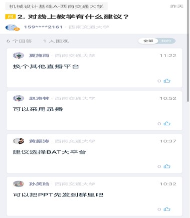 总之,第一天的线上教学课程,除网络堵塞导致平台拥挤之外,教师们积极采用备选方案,线上教学运行良好。新的教学模式的改变给了教师别样的成就感,激励教师们根据第一堂线上教学课程的经验,更好的改进和推进信息化教学。