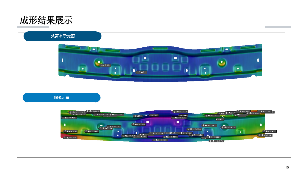 5.采用正交试验法对影响回弹的工艺参数进行最优解,对模面进行了修正,减小回弹量。