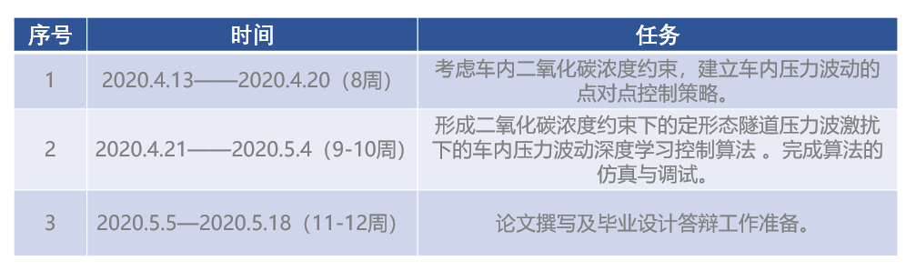 现已完成论文绪论、车内外压力传递模型的建立、控制系统的建立,控制算法中深度神经网络的建立、点对点控制策略的研究共四章论文内容的撰写。