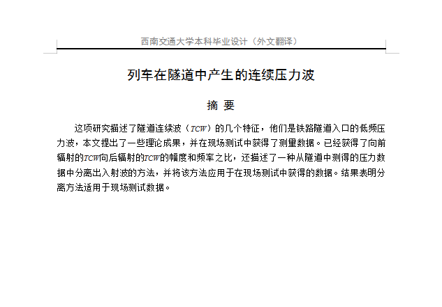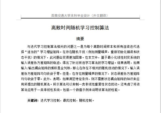 完成涉及毕业设计内容英文文献翻译两篇,共计11657单词。分别为《离散时间随机学习控制算法》和《列车在隧道中产生的连续压力波》。