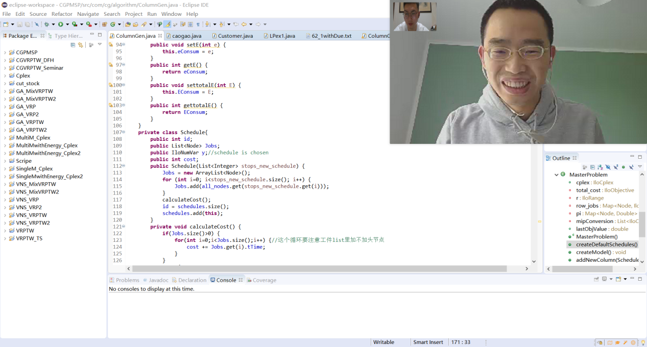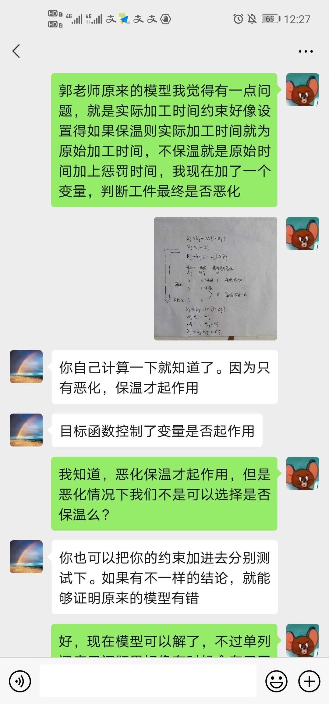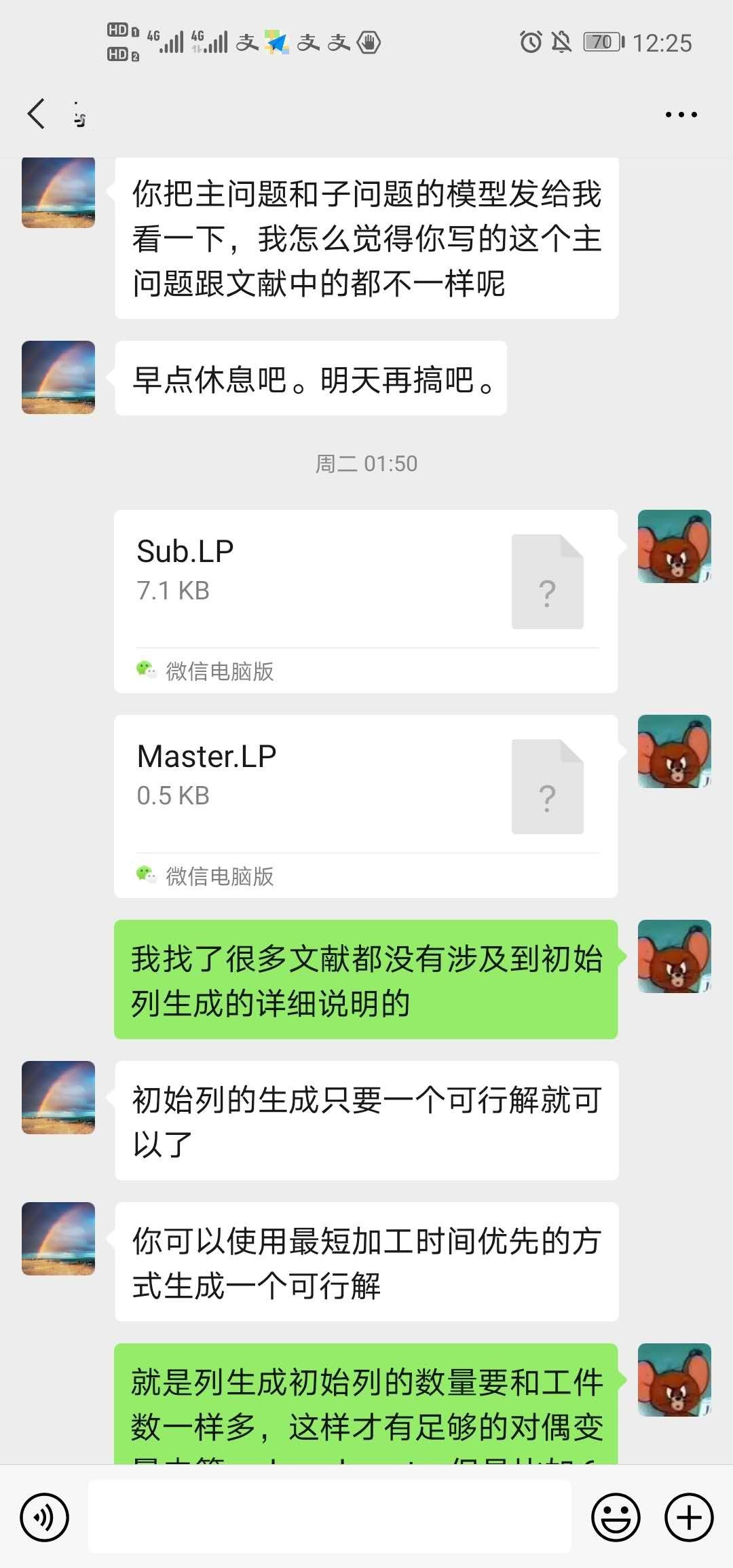 在进行毕业设计任务拆解时,我对如此复杂的问题顺利完成感到颇有压力。在毕业设计初期,郭鹏老师每次都鼓励我,给予了我莫大的信心与支持,同时还提供了大量的参考文献和示例代码。在多次的在线指导过程中,郭老师引导着我阅读文献与学习算法理论。在对并行机调度问题有了一定的认识与理解后,我经过多次尝试终于建立出模型并验证成功。在建模取得进展的那一刻,我感到无比的兴奋。在设计算法方面,我又恶补了许多运筹学的基础知识,撰写代码,不断地编译调试,在多次试错后终于完成了对原始模型的分解。虽然因疫情影响我与郭老师并不能见面,但是他在毕设过程中对我的学习和个人生活都提供了耐心指导和悉心关怀。郭老师对于我的各种问题都及时在微信上回复,并且细致地进行讲解。在我遇到困难与挫折时与我长谈一两个小时,为我的毕设能顺利进行提供了很多帮助。另一方面,郭老师也十分关心我的未来科研发展和职业规划,经常为我提供出国留学选择公司方面的指导,点亮了我之后的学术发展的道路。感恩郭老师孜孜不倦的辛勤教导。