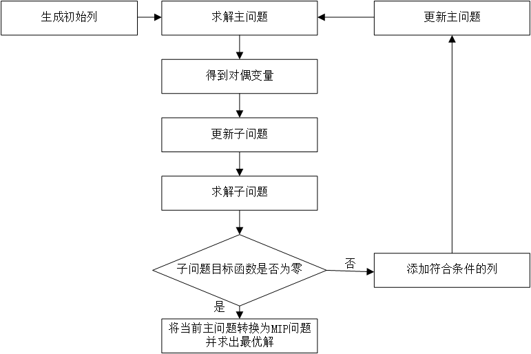 完成模型分解后设计列生成算法对模型进行求解,本文设计的列生成算法框架示意图如下: