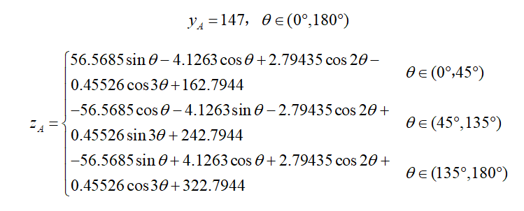 ,求攀爬爪旋转中心的坐标。由于攀爬爪在工作时是上下两个爪交替进行的,攀爬爪的运动学规律改变在于攀爬爪和绝缘子表面是否有接触,故其运动学方程需要分段考虑。