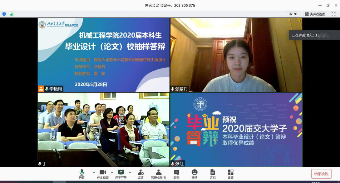 2020年5月28日上午9时,2020届本科生毕业设计(论文)校抽样答辩在腾讯会议中进行。为深入贯彻落实教育部和四川省教育厅应对新型冠状病毒肺炎疫情防控工作要求,按照公司通知,本次答辩采取员工线上答辩,评委集中评阅的形式。公司党委书记董大伟、经理钱林茂担任组长并全程参与,院质保委主任程文明、副主任杨美传担任答辩副组长,副经理田怀文、副经理丁国富、质保委员秦萍、周斌、陈春俊,系所教研室主任及教师代表等多位答辩委员、十名校抽样员工参与本次答辩,公司面上答辩组长、答辩秘书和2020届毕业生通过线上会议旁听答辩。