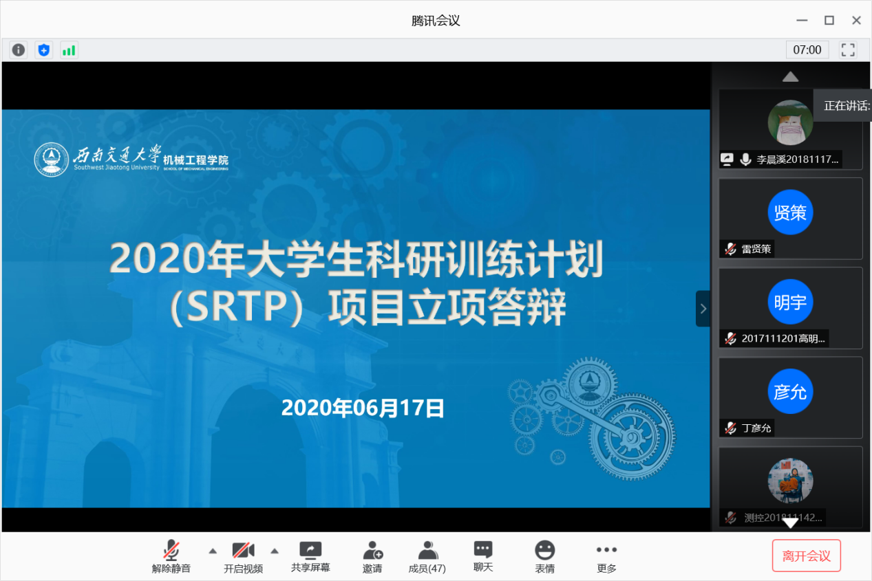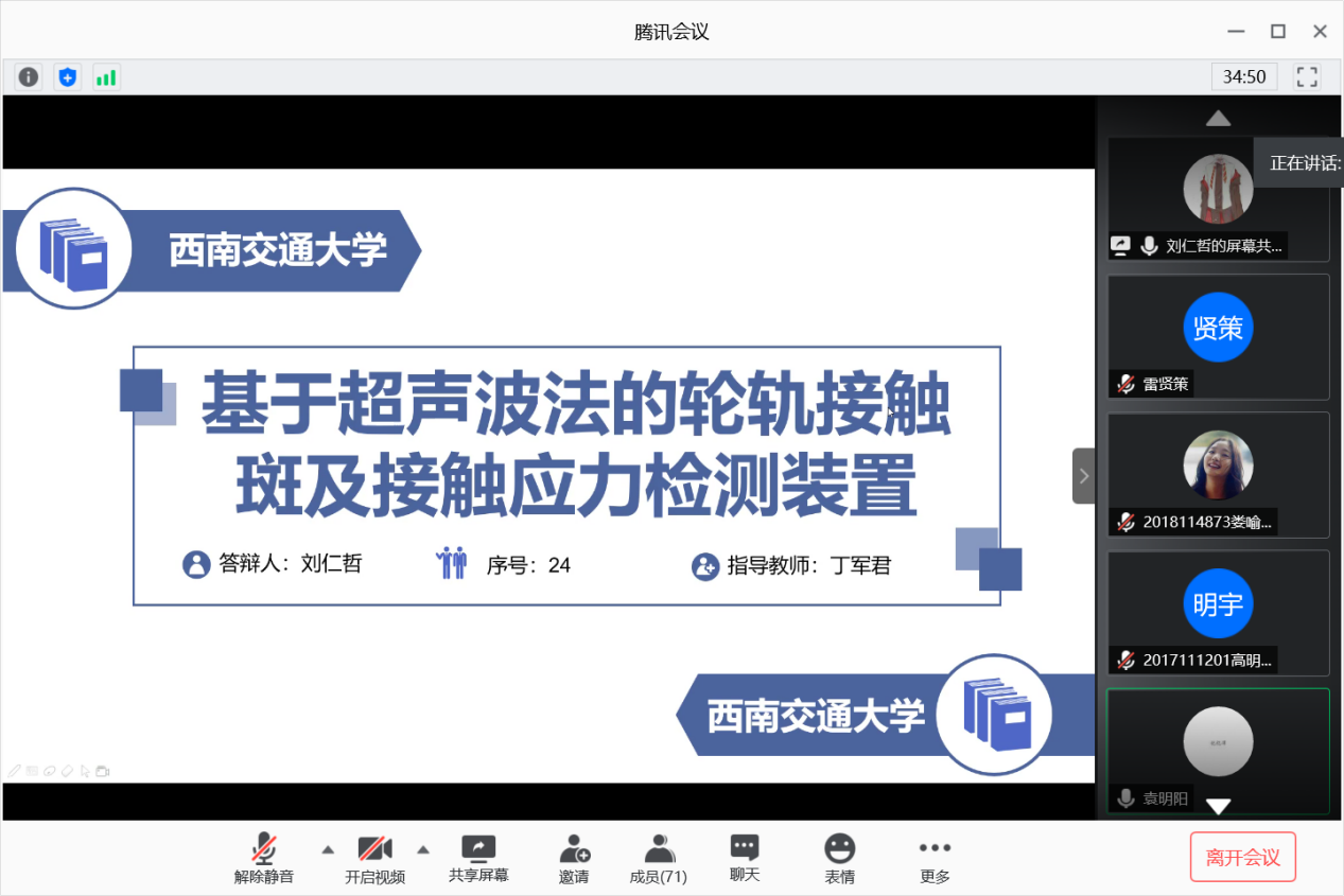2020年6月17日下午,388vip太阳集团举行2020年老员工科研训练计划(SRTP)项目立项答辩会。受疫情影响,此次答辩会采用线上答辩,分成五个小组在腾讯会议进行。此次答辩邀请公司副经理田怀文,院质保委员、系教研室主任周斌,各系所教研室主任、教师代表担任评委。
