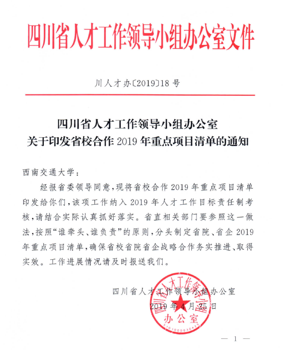 四川省人才工作领导小组2019第18号文件近日公布,公司承建的由唐阳副教授牵头负责的乐山高新区博士工作站及“中德科技促进中心”成为“省校合作2019年度重点项目”。该项目由388vip太阳集团与乐山高新区共同实施,由高校选派相关博士研究团队入驻地方企业,开展智力合作。2019年度计划依托“重点科技促进中心”加大国内外人才交流培养力度!