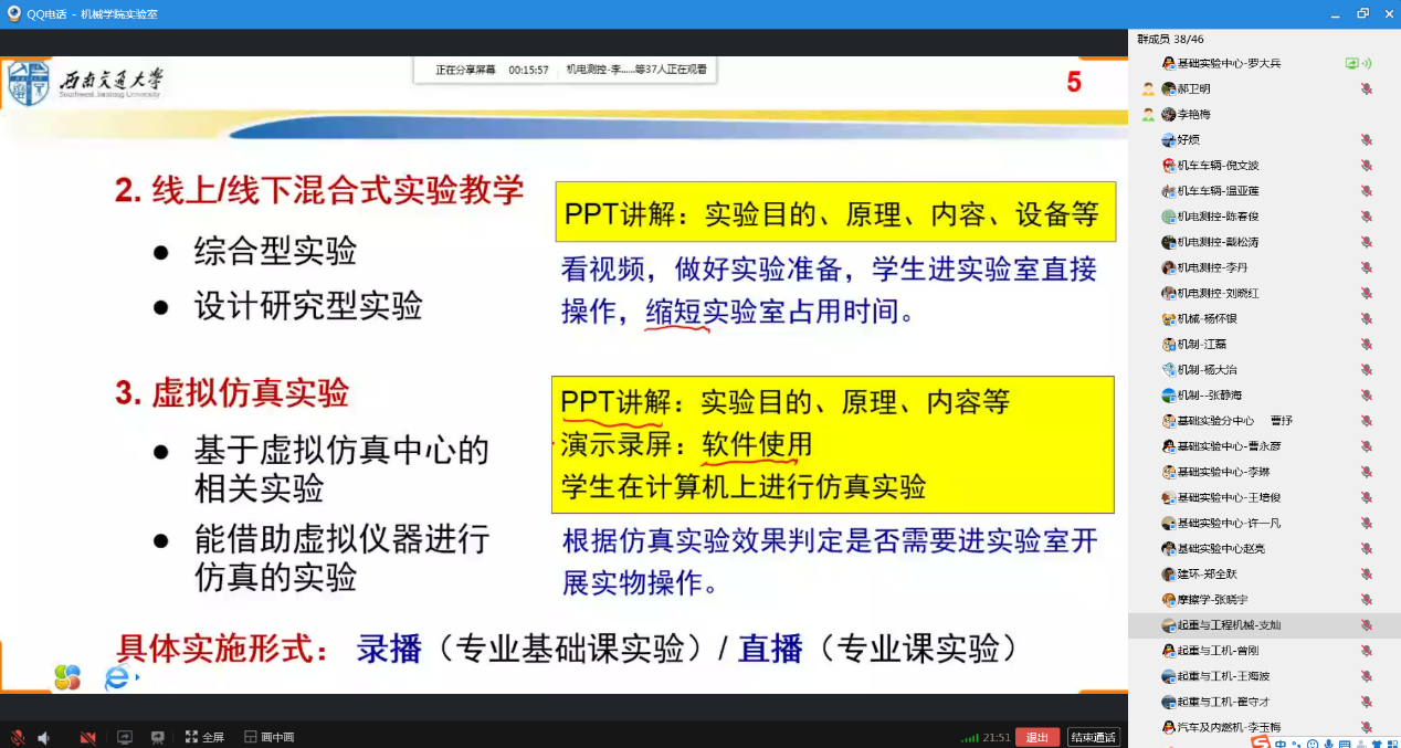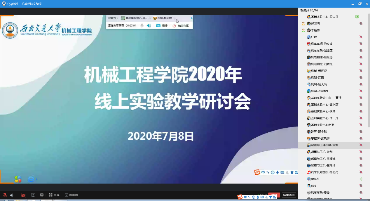 为探索线上、线下混合式实验教学模式改革,提升线上实验教学能力,388vip太阳集团于2020年7月8日下午15:00通过公司实验室QQ工作群,举行了首次在线实验教学研讨会。