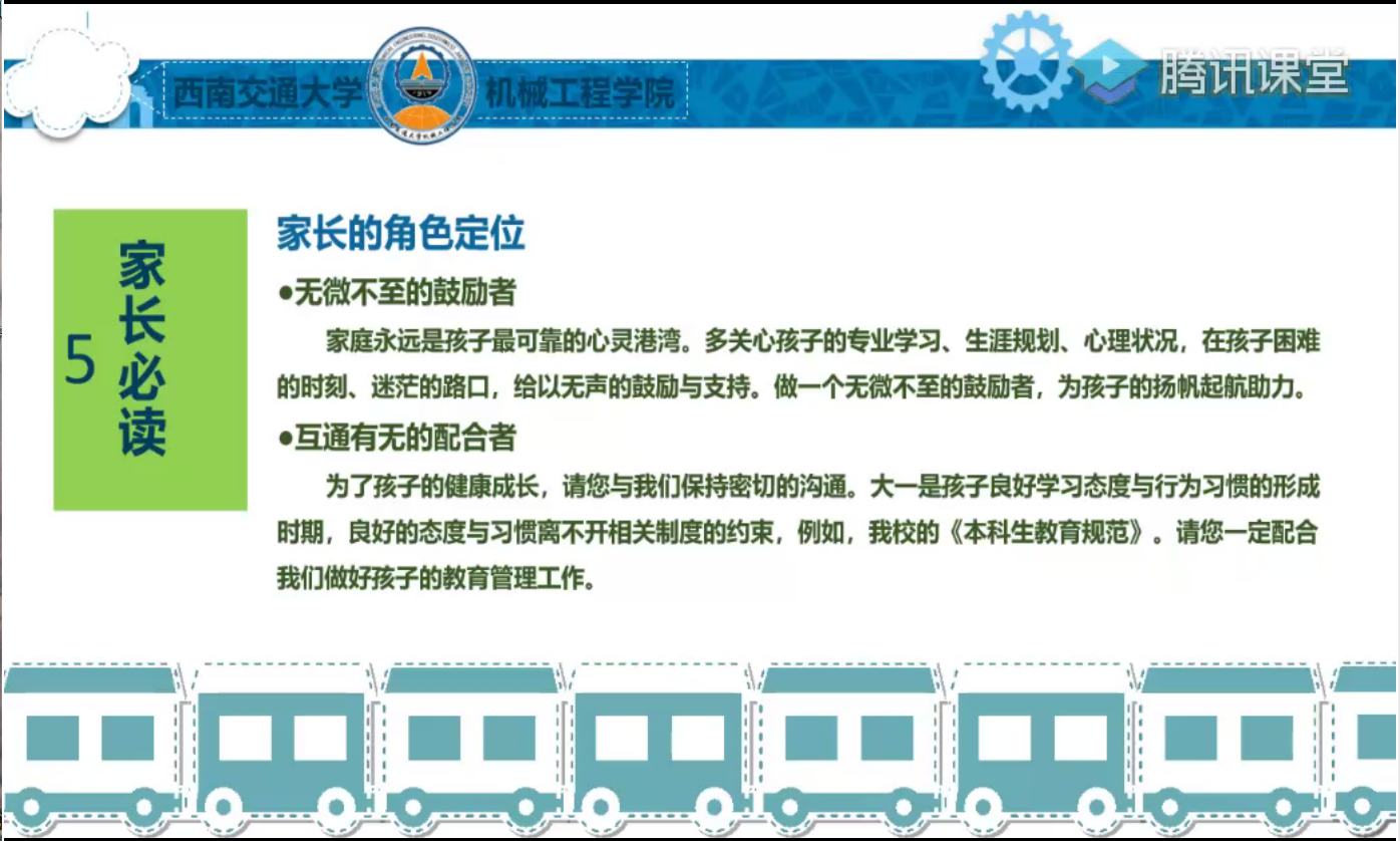 紧接着,蔡俊俊老师对于常见问题做了一些解答。例如公司对员工的学习要求是否严格,员工是否有机会获得奖学金,员工如何通过课程,课余生活如何安排,员工怎样尽快完成从高中到大学的转变以及如何获得未来发展规划等等。蔡俊俊老师同时也给了家长很多建议,通过举例让家长意识到自己的角色定位,并表明家长也应该给予孩子适当的支持和鼓励。
