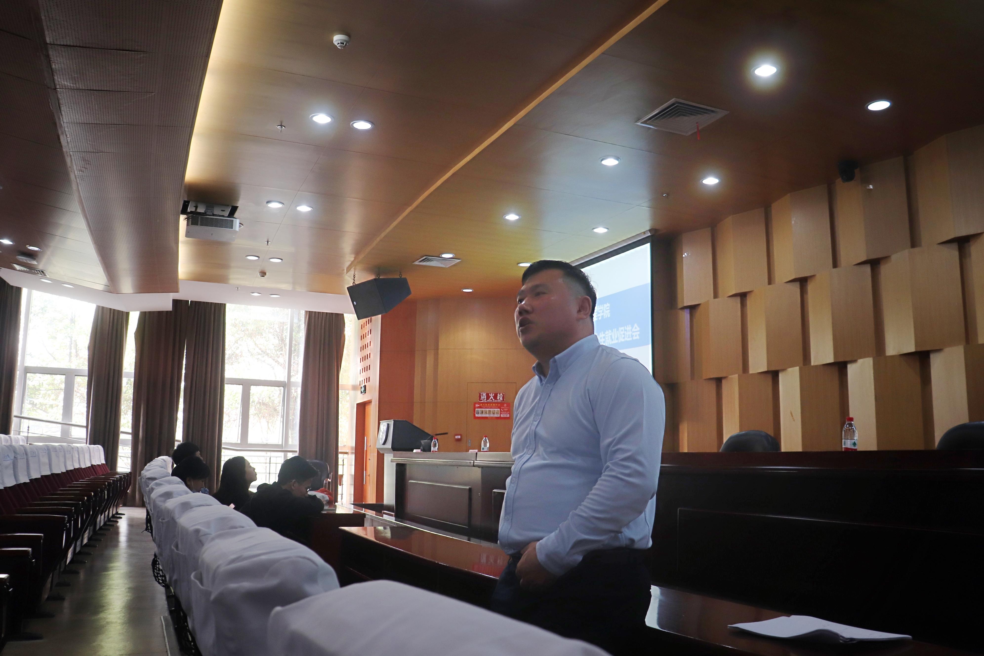 上午10时,讲座正式开始。孟书记对近几年的就业形势进行了分析,并结合身边真实案例,给员工们提出指导意见。孟书记以历史眼光带领同学们从自身就业的处境到当下就业情况进行深入分析,强调同学们要关注国家政策,珍惜当下良好的就业机会,充分利用公司资源、社会资源,明确未来发展方向,并指出要“学一行,干一行,爱一行,专一行。”对于考研失利的同学,要谨慎选择二战,一旦明确了目标,就要坚定不移,一战到底。