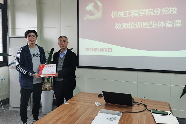 董大伟书记首先为党课教师颁发了公司党校培训结业证书,并对授课教师提出了四点要求:一是请授课教师严格要求自己,把握正确的政治方向,规范言行;二是认真做好备课,通过生动有趣的故事、案例,激发员工爱党爱国的热情;三是深入了解入党积极分子思想动态,开展调查研究,提升党课教育时效性;四是将积极分子培养培与三全育人结合起来,以党建带动学风建设,发挥入党积极分子的榜样作用。