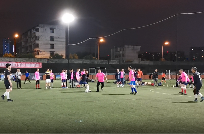 4月7日晚,由校工会主办,教职工足球协会、医幼及场馆服务中心承办的第八届教职工足球比赛(五人制)在九里校区体育场火热开赛。公司教职工足球队首战面对物理公司二队,公司党委副书记程军、工会副主席张亚非、教师服务办主任蒋群华老师等到场观赛,为公司足球队加油鼓劲。