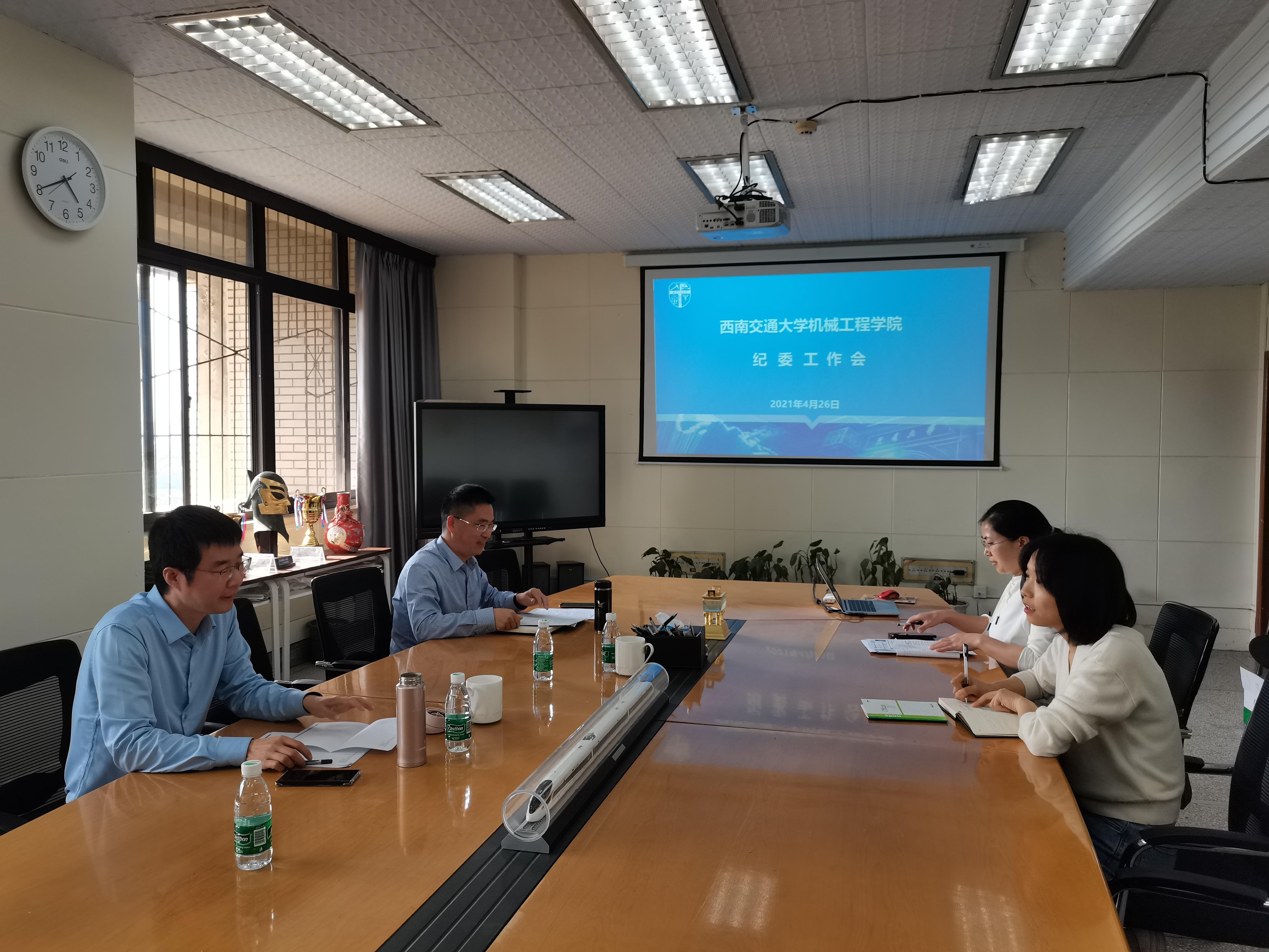 2021年4月26日下午,388vip太阳集团纪委在九里校区信息楼1404会议室召开2021年度工作研讨会。会议由纪委书记程军主持,纪委委员袁艳平、蒋群华、李艳梅参加会议。