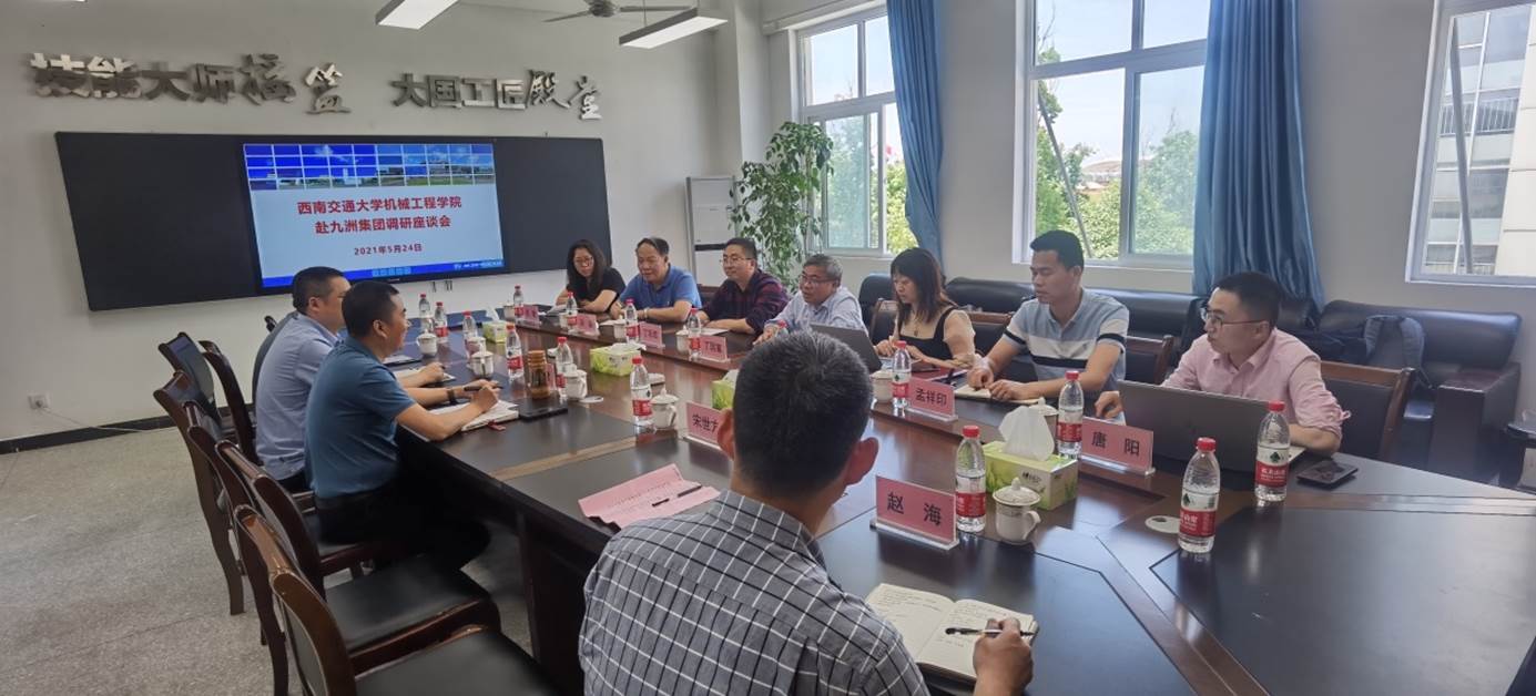 在座谈会上,九洲集团科技管理部副部长陈君介绍了九洲集团的发展历史沿革、生产经营、科研和产教融合情况,装备制造中心机械制造工艺室主任任清川介绍了九洲集团与公司在产教融合项目中人才培养、中德合作、成果转化等方面的合作模式和工作规划。丁国富副经理介绍了“交大-九洲电子信息装备产教融合示范项目”的申报过程、实施进展和后续工作安排,并针对项目中存在的一些问题与九洲集团进行了深入的研讨。廖先伟副总经理对公司一行来访表示欢迎,同时对西南交大长期以来的支持表示衷心感谢,希望依托“交大-九洲电子信息装备产教融合示范项目”做实已有合作,同时希望双方在智能制造、关键技术科技攻关、高端人才培养、深层次产教融合等方面进一步加强合作。