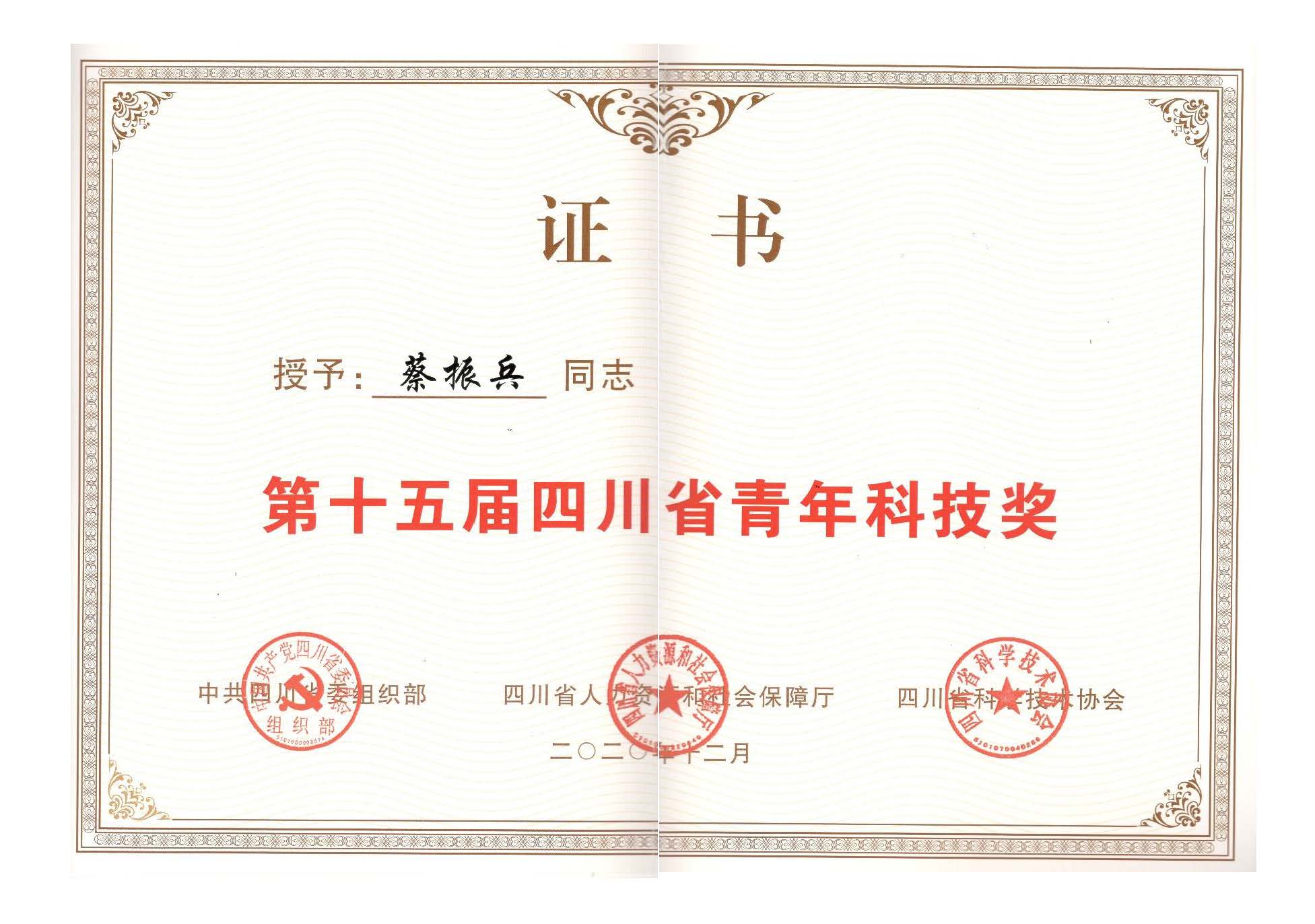 公司青年教师蔡振兵研究员荣获“四川省青年科技奖”荣誉称号