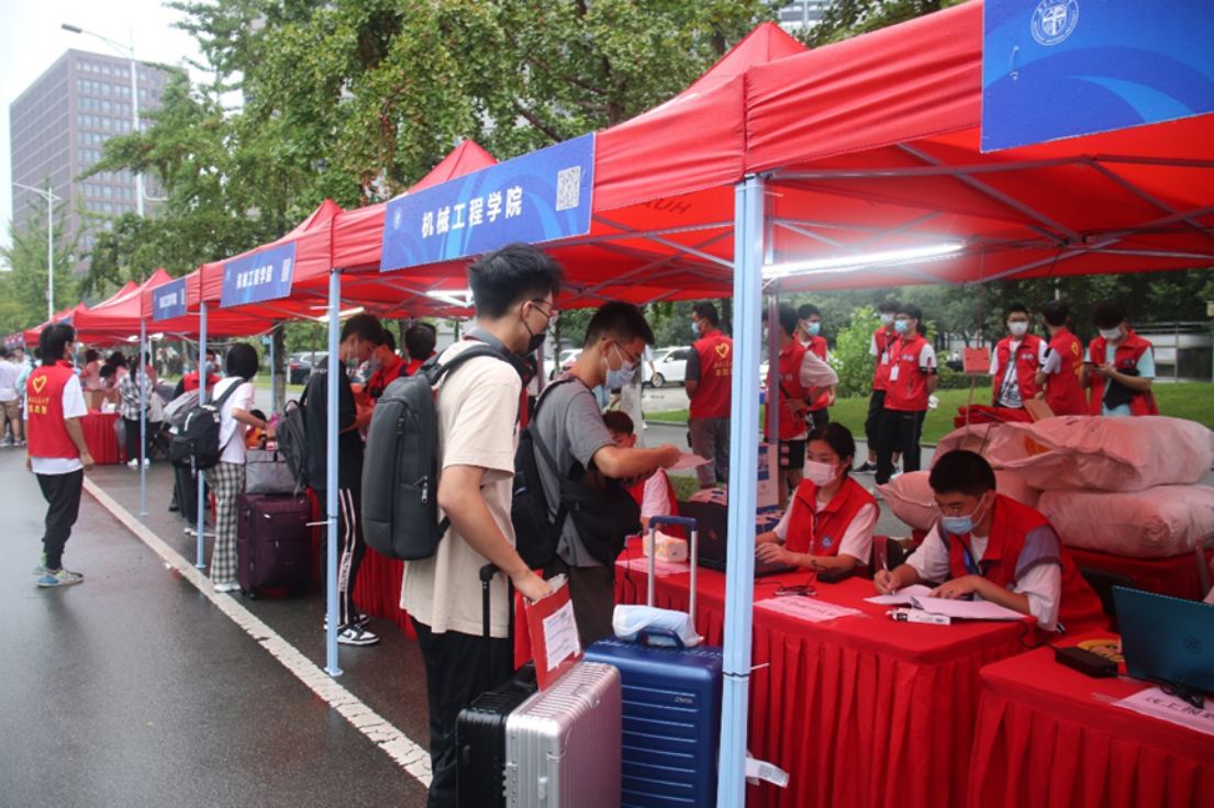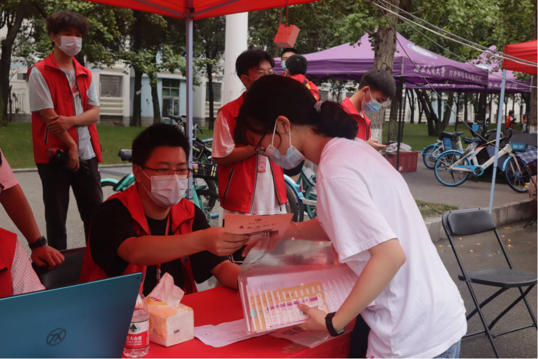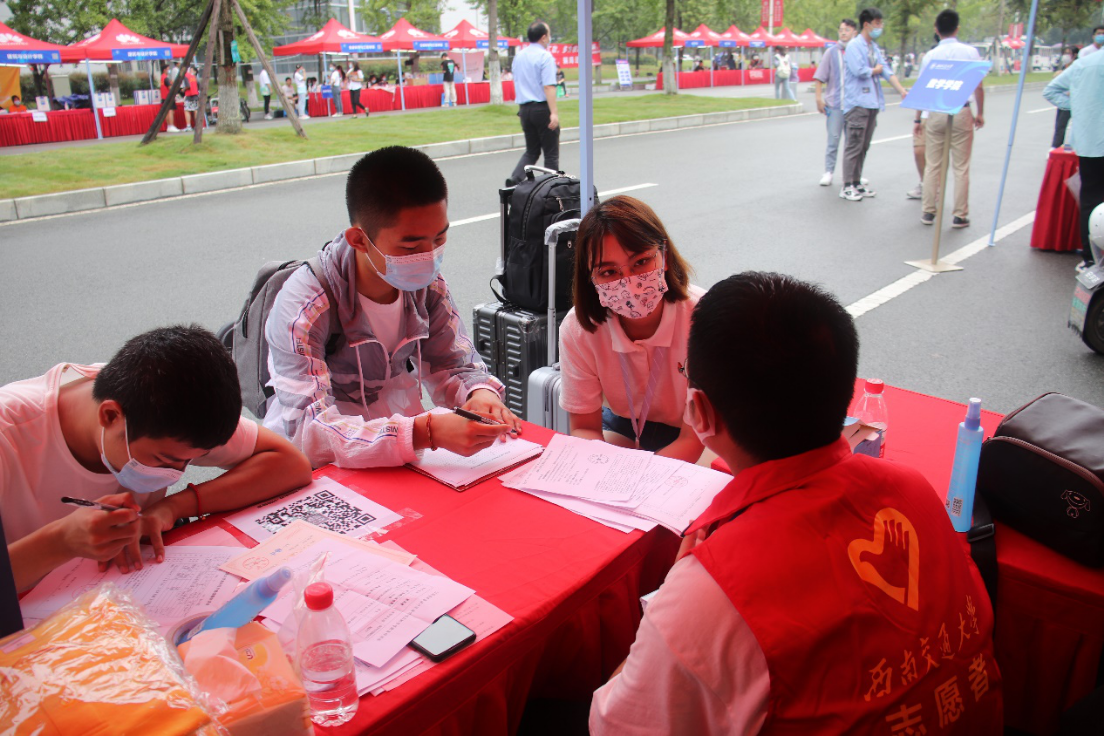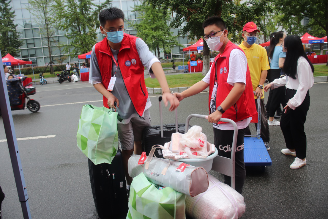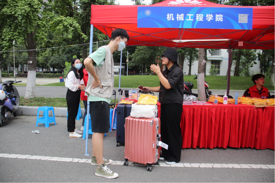 在志愿者的帮助下,新生顺利报道,并领取了新生大礼包,其中包括文化衫、入学手册、新生学习指南、扬华人物等交大专属资料。同时,我们为部分经济困难的员工提供生源地贷款,方便顺利入学。走完报道流程之后,由志愿者帮忙搬运行李,并带领新生去往宿舍,熟悉校园环境。