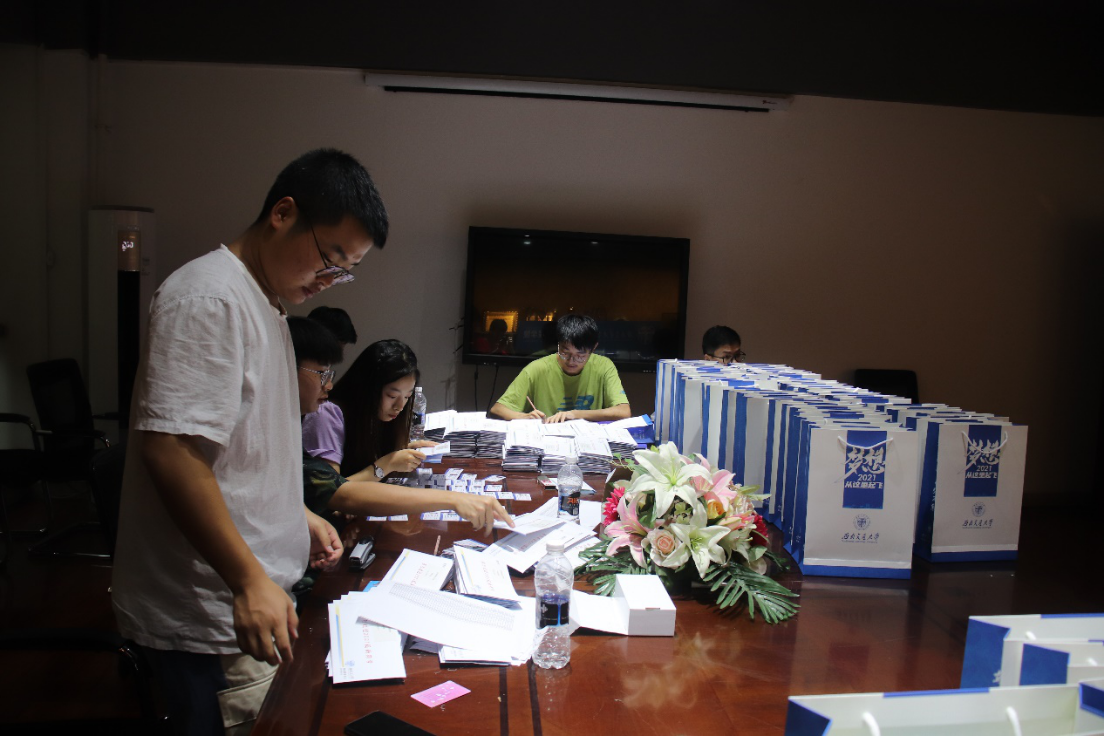 公司的领导、辅导员老师、以及志愿者们付出了巨大努力。我们的迎新准备自8月27日便有条不紊的开始进行。8月30日上午11点,志愿者们在三栋楼下搬运物资。 8月31下午,志愿者为新生装配一卡通,水卡等,并按学号排序,以便报到时发放。8月31日,为新生装配开学纪念礼品,其中包含了印有学号姓名的钥匙扣,以及纪念书签和卡袋。