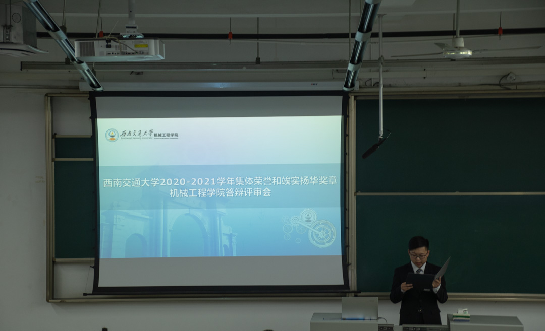 2021年10月11日晚18:30,2020-2021学年集体荣誉评选暨竢实扬华奖章388vip太阳集团答辩会于X2218准时举行。参加这次活动的评委老师有公司党委副书记张江泉,副经理田怀文,教师代表曾祥光、何朝明,公司团委书记于楠及各年级辅导员老师。在同学们热烈的掌声中,主持人任禹尧向我们介绍了到场领导嘉宾及评选规则。