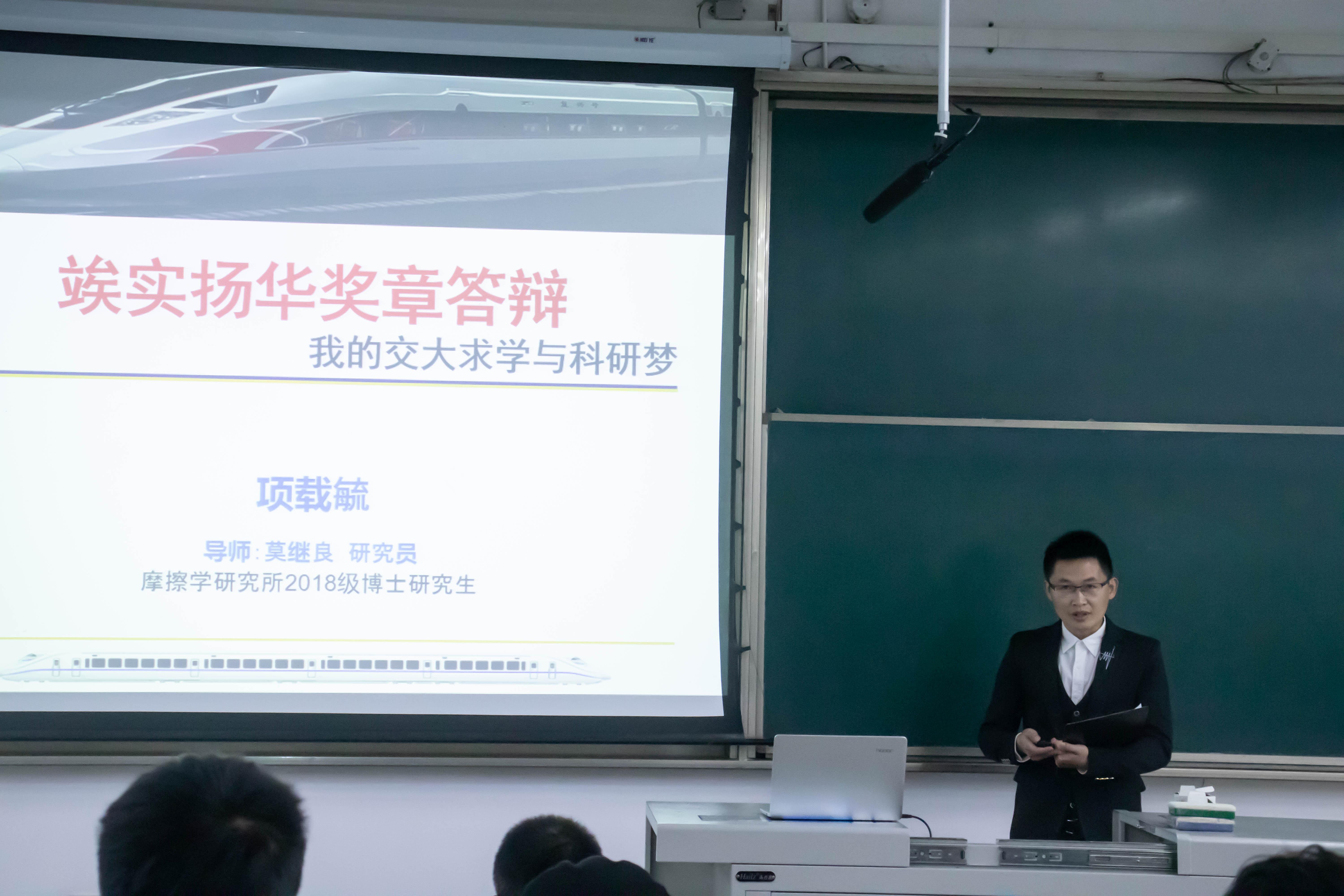 接着,我们迎来了研究生竢实扬华奖章的评选。候选人项载毓同学为了自己的科研梦、交大梦。同时,候选人漆令飞同学精彩的发言和先进的事迹也赢得了评委观众的热烈掌声与好评。