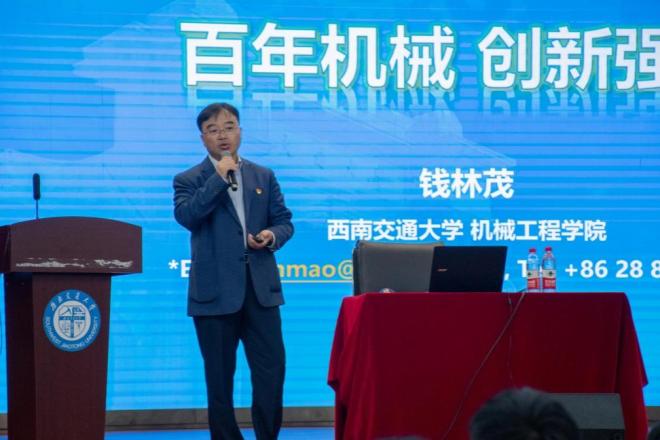 随后,是钱林茂经理发表致辞。经理向我们讲述了交大机院过去百年的辉煌历史,介绍了一位又一位的优秀前辈。这些历历在目的往事和杰出的员工,无不吸引着在座的同学们,让同学们都想像他们一样,为国家做出巨大的贡献,为交大机院的院史添上浓墨重彩的一笔。