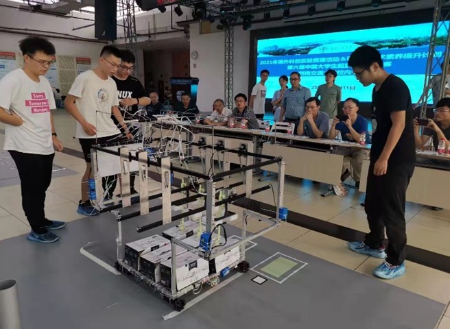 流技术(起重机)创意赛自第一届开始,就由公司承办校内选拔赛,本届大赛自2021年3月大赛启动以来,在公司教务处、资产与实验室管理处、研究生院支持下,来自机械公司、电气公司、信息公司等共48组200余名师生参与到此次大赛中,由公司程文明教授、田怀文教授等多名老师组成指导教师团队对员工进行数轮培训指导、演示训练,员工们历时7个月完成了起重机的方案设计、加工制造、调试检查等,经过校赛选拔10支队伍代表公司参加此次国赛。