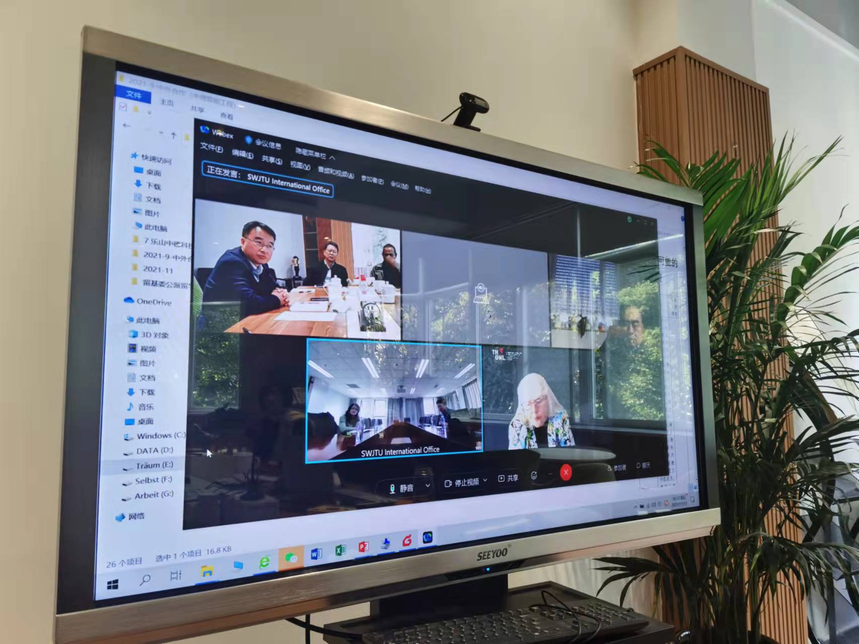 下午四点,与会全体成员与德方宋坚教授、国际处任新红处长、陆霞副处长、利普大学Frau Prof.Dr.Meier召开网络视频会议,双方就中德合作办学项目团队问题解决办法进行了深入探讨。