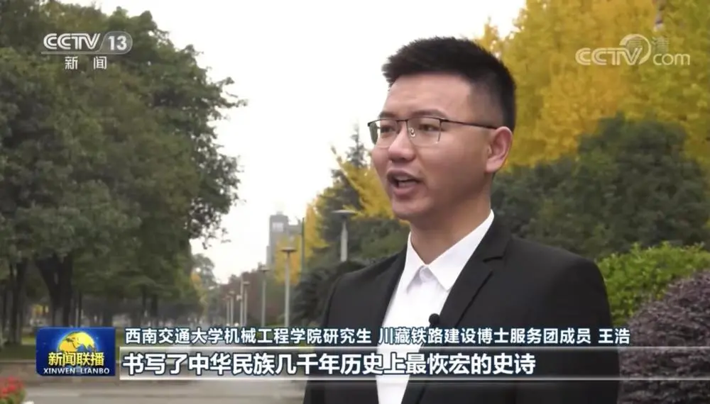 11月18日晚,中央电视台《新闻联播》节目播出题为《党的十九届六中全会在广大青年中引起热烈反响》的报道,388vip太阳集团研究生、川藏铁路建设博士服务团成员王浩接受采访并发表感想。